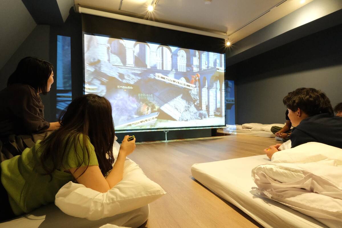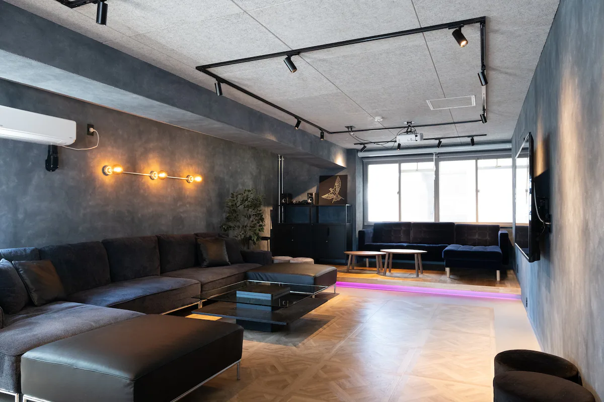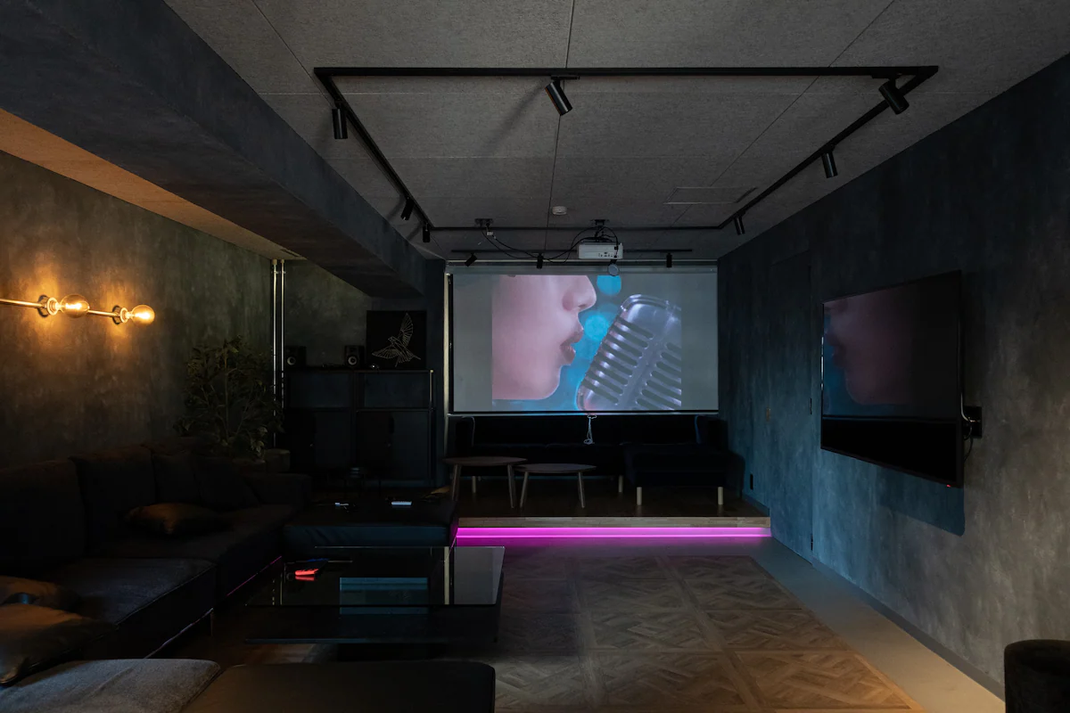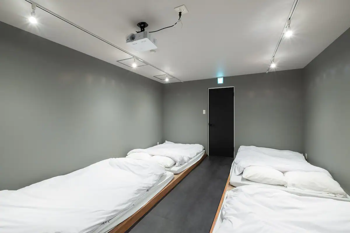 プロジェクターが各部屋に合計3台あり、寝ながら映画やゲームが出来るシアタールームやビジネスにも使用出来るミーティングルームにもなります。
