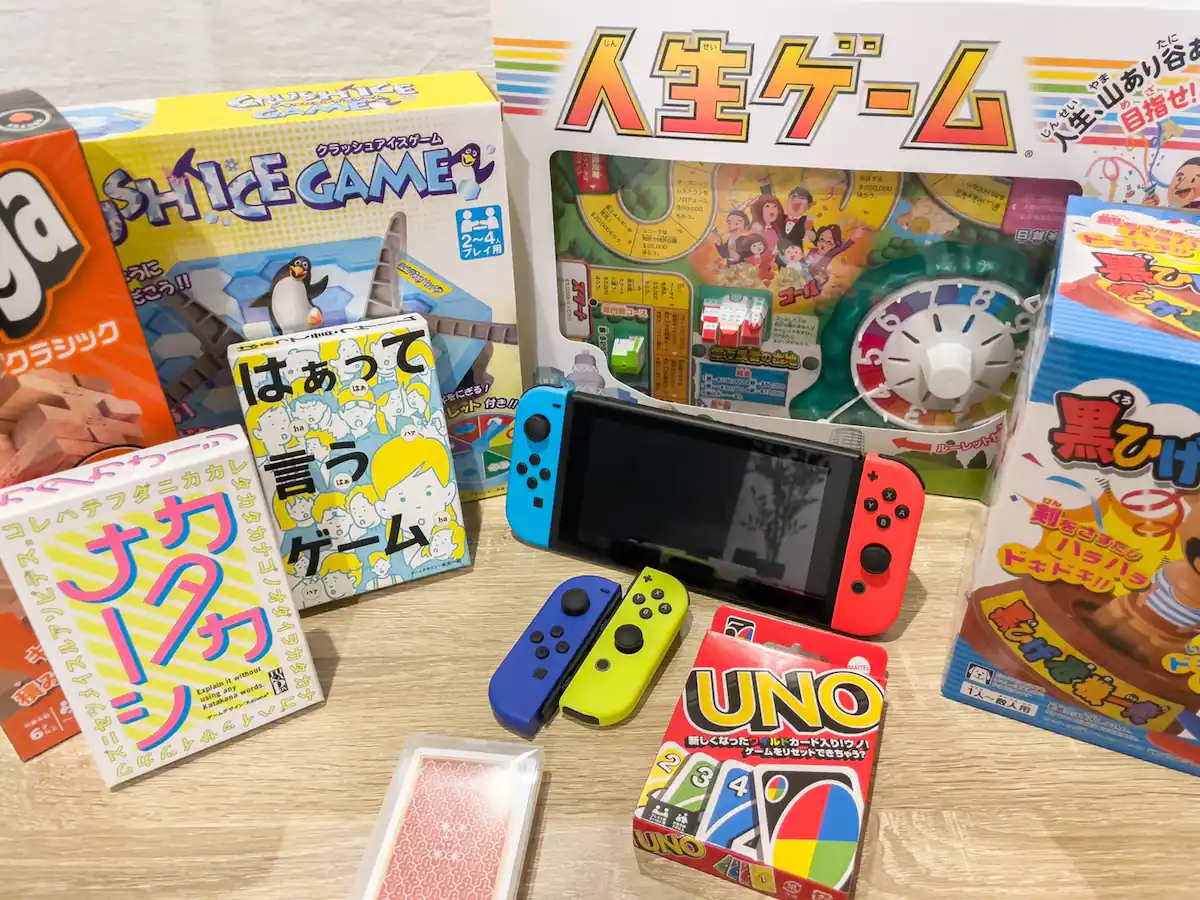 最新の高性能プロジェクターや任天堂スイッチ、ボードゲームを多数ご用意。